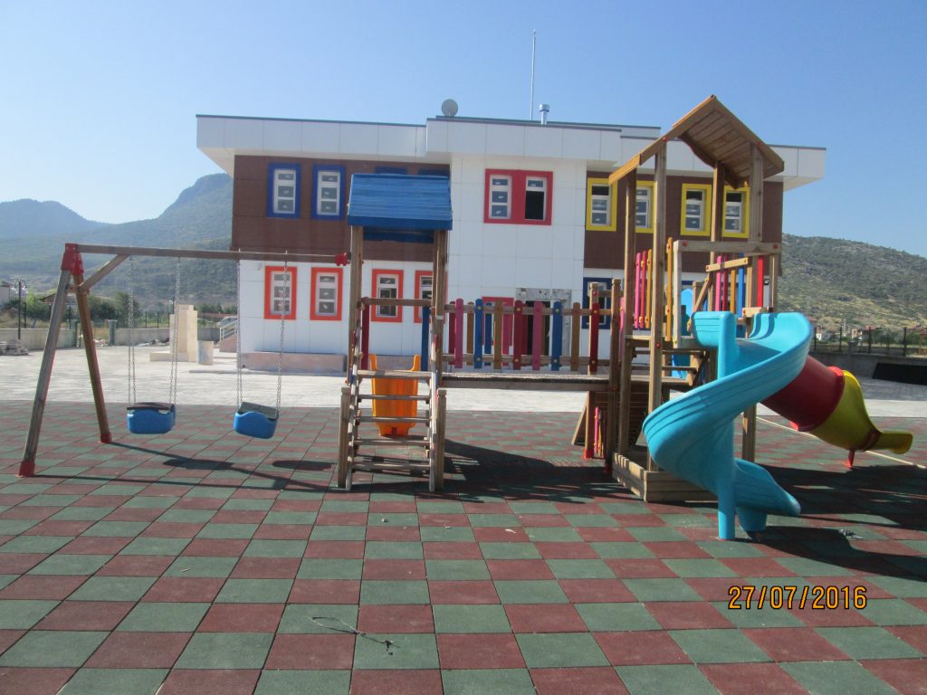 Tüm park ekipmanları, çocuk sağlığına uygun malzemelerle üretilmiş ve güvenlik standartlarına göre monte edilmiştir. Anaokulu ortamına uygun bu park, miniklerin enerjilerini keyifle atabilecekleri renkli bir oyun dünyasına dönüştü.